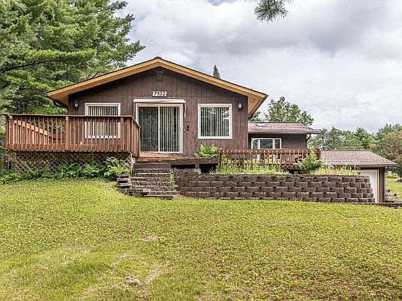 This beautiful cedar siding home sits proudly on a half an acre close to town and the Bearskin Trail. Home has been very well maintained and ready for a new owner to move right in! Main level includes all 3 bedrooms, 2 full baths, open concept living room with patio doors to a cozy sun room, wood burning fireplace, oak cabinetry in the kitchen along with a large island, master suite with brand new updated bathroom, patio doors to the back year deck and lots of closet space. Downstairs you will enjoy the large family room, laundry area and additional workshop. Updated flooring and updated master bath are a few updates this year. Other updates include roof, furnace, water softener, central air conditioning all in 2008. New septic in 2012. This home has ample garage and storage space. Exterior features include nicely landscaped yard, wood shed, black top driveway, storage shed and attractive stone retaining walls. Fantastic home at a fantastic price!