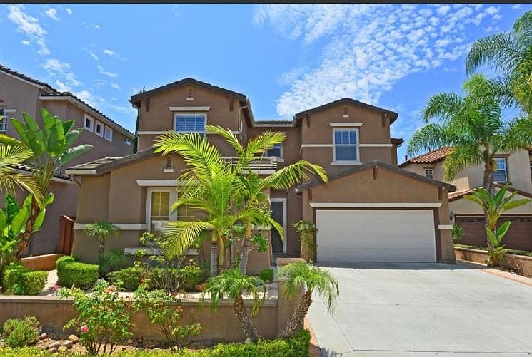 Ideally set in the highly desirable Torrey Highlands community, this elegant San Diego home offers comfort, convenience, and an enviable indoor-outdoor lifestyle! Defined by neutral tones, gleaming wood floors, and ample natural light, the interior is a welcoming space you'll want to linger in. Stunning open-concept gathering areas are sure to impress your guests, from the living and family rooms with striking fireplaces to the dining area illuminated by recessed lighting. Designed for gourmet cooking, the kitchen has double ovens, granite countertops, an oversized island, and a sunlit breakfast nook. Completing the main level is a guest suite you can transform into an office or any room you prefer. Upstairs, find a laundry room and 4 additional bedrooms, including the primary retreat that receives sunlight through rotunda-style windows. Treat yourself to a large walk-in closet plus an ensuite with a soaking tub and dual vanities. Extensive hardscaping in the fully fenced backyard surrounds a well-sized patio, mature tropical-inspired landscaping, and fruit trees. As premium perks, top-rated schools, parks, trails, shopping, and freeways are nearby. Come tour this must-see gem today!