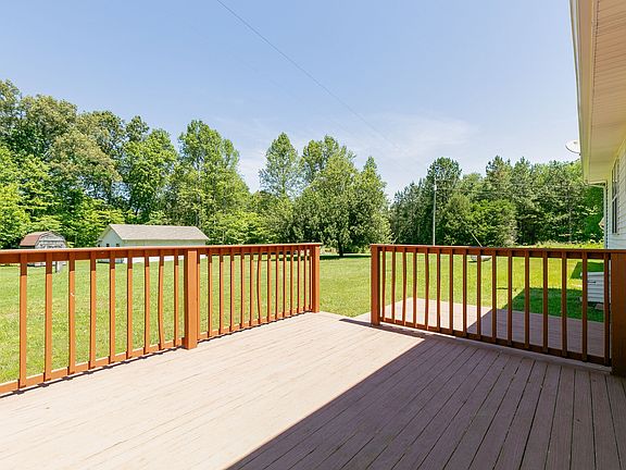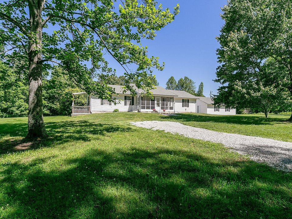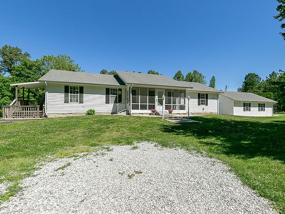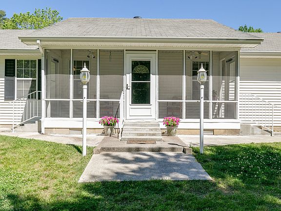 Charming 1 level home nestled on private 2.8 acres in lovely setting. Move in ready! New HVAC, quality vinyl plank flooring, paint, fixtures & countertops. Multiple outbuildings include 2 large shops & 1 wood storage building, all with electric. Perfect for woodworking, shade tree mechanic or hobby needing protected space. Tornado safe room in garage! The screened front porch, covered side porch & lg rear deck will enhance outdoor enjoyment of this perfect country retreat.