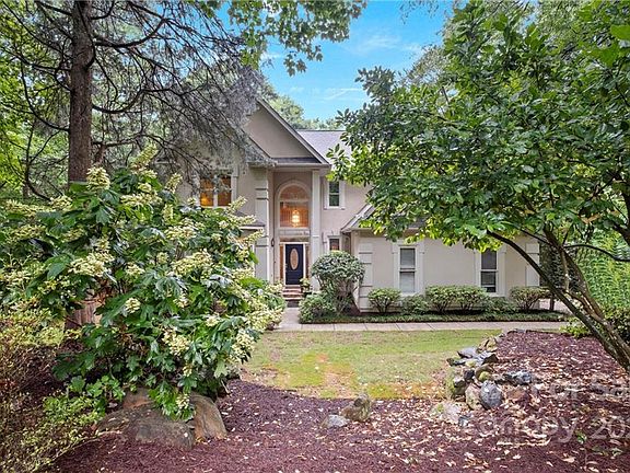 Charming and custom-built full stucco traditional home on over a 1-acre wooded lot in an established Cobblestone community with top-rated Weddington public schools. Enter into a two-story foyer joined by a formal dining room and living room. Continue to an inviting two-story great room with oversized windows and a stone front fireplace. Main level bedroom with full bath connects to sunroom, full of windows overlooking private back yard. The upper level includes 3 spacious bedrooms, including the primary suite with large sitting area, 2 walk in closets and expansive bathroom with jetted tub and stand alone shower. Other 2 bedrooms share a bathroom. Recent updates include roof (2021) main level HVAC (2020) and kitchen appliances replaced (2021). This home is conveniently located to many shops and restaurants that the area has to offer!