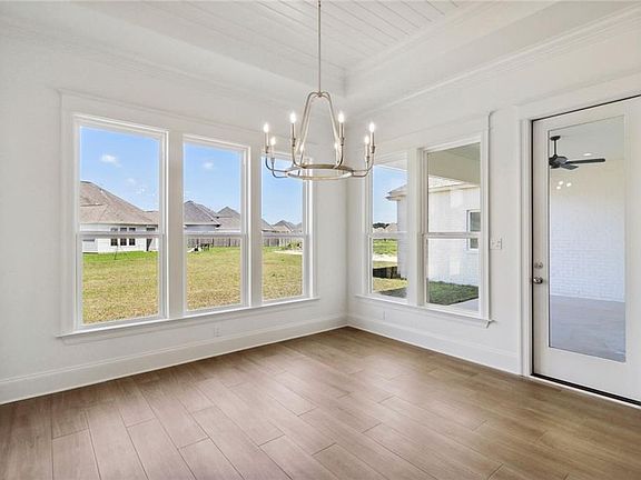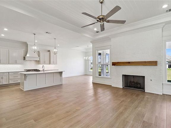 Central foyer with a coat closet leads to a lovely open living area with a striking ventless fireplace arrangement, A noteworthy kitchen features a generous island with dual sinks, The dining room is designed for entertaining with direct access to the spacious rear covered patio, Primary bedroom suite has a stepped ceiling, Relax in the primary bath with both a stand-alone shower separate tub, and a dual vanity. Separate laundry, mud room, and pantry are connected for convenience.