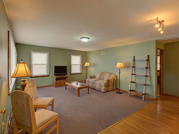WHY PAY RENT WHEN YOU CAN OWN! This beautifully maintained two bedroom ranch style home is conveniently located and offers easy access to Chicago. It features everything on one level: Living Room; fully equipped eat-in Kitchen with pantry; Master Bedroom with large closet and hardwood floor; second bedroom or Den, also with hardwood floor; full bath; and main level laundry area and utility closet. Enjoy the large, private backyard from the attached deck (16 x 15.5). Home offers vinyl siding for easy maintenance and newer vinyl windows. The 2.5 car garage provides great additional storage. Seller is offering a one year HMS home warranty.