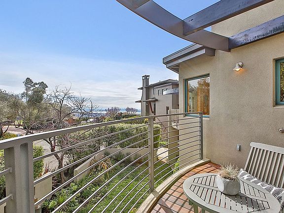 "Situated on a peaceful cul-de-sac of custom-designed homes, w/a trailhead to Claremont Canyon, this thoughtfully designed & well-maintained home is flooded with natural light. Beautifully integrated into the level lot with a rare front lawn and private garden, it feels like living in a retreat somewhere on the Mediterranean coast. From every room, through the numerous windows & doors, one looks out onto beautiful verdant and blooming vistas, over tiled roofs to Claremont Cnyn, to the Bay, to the G.G.Bridge, to the Redwood grove. The floor plan & circulation hits a balance of space & intimacy w/a flexible layout, friendly for families or couples w/offices & private space for visitors. It has all the bells & whistles, from high-end appliances to walk-in closets, to an awning-covered heated balcony. Great indoor-outdoor flow. Beautiful stairway winds up through a dramatic double volume space topped by a large skylight & feels like a stairway to the stars. Serenity & beautify abound.