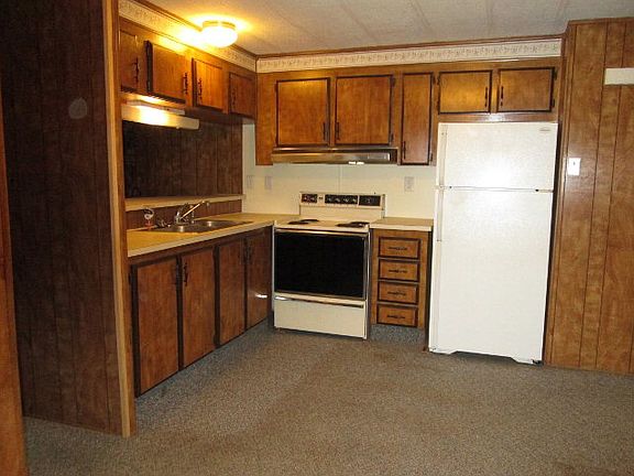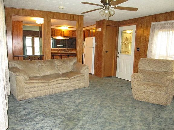 14' x 67' 1980 New Moon Model #RJ70F2FSBN Single Wide with 2 additions and attached 2 car garage nestled into a 3/4 acre lot. Great location - just out of village - quiet area! Features an entry sunroom / enclosed porch. Kitchen with appliances, dining room with gas log fireplace (not been used by current owners), living room, two bedrooms (one with half bath in it), and storage room. Nice flat lot where the home sits back in for privacy. Large garage with door openers. Small shed in back. Reasonably priced - don't miss out on this one! Full assessment @ $66,383.