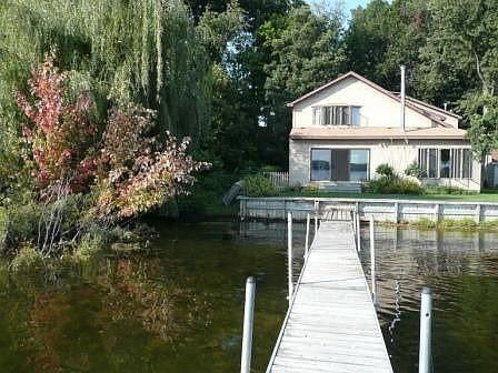 Gorgeous Lakefront Setting On The 700+ acre all-sports Crooked Lake! Enjoy all Lakefront living has to offer - fishing, swmimming, and boating! This home features a large, spacious kitchen with new granite countertops, new tile backsplash, new sink and new appliances. The dining room and a great room have awesome lake views. An office/sitting area, a full bath and the laundry room complete the main level. Upstairs is a very large master suite with its own private bath and two additional bedrooms. (There is room to add another full bath upstairs if desired.) Enjoy the refreshing breeze off the lake as well as the privacy of the surrounding wooded areas. A perfect place to make your year round home or your relaxing retreat!