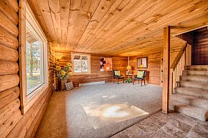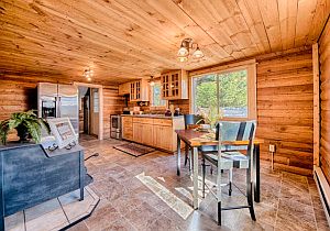 Charming bungalow log cabin on one acre! Surrounded by trees, this home is in the perfect peaceful setting. A must-see remodel with brand new frieze carpet and stunning granite countertops throughout the home. High-end stainless steel appliances in the kitchen and tile shower with tile floors in the bathroom. The cabinets and fireplace give the entire house a warm-cozy feel! Spacious room that are perfect for entertaining! With a two-car garage, this delight will not last long!