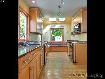 Updated Mock Crest Bungalow - Close to Willamette River/Private backyard - 2 Car Garage - Remodeled Kitchen w/Custom Cabinets/ Lighting,New Counters/Appliances,Lg Vaulted Nook - Updated Bath w/Mosaic Tile/Stone - Lg Living Rm w/Fireplace - Master w/walk-in & new ceiling/insul 06' - Gas Furnace 05' - New Windows 06'(2nd lvl)/08' - Hardwoods(main)/Blt-ins. Incl: W/D,Ref,TV,Couch