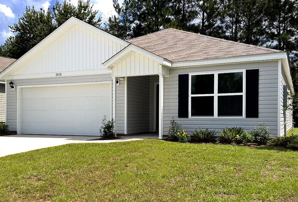 Located in Barrett's Park at Olde Towne Village, tucked away from the hustle and bustle of town in Bayou George. The Aria foyer leads to the open living area, dining room, and kitchen. The kitchen has a large island with bar space overlooking the family room. The master suite is off of the dining area and has a large walk in closet. The bath has a dual vanity, water closet, separate shower, and garden tub. At the front of the home are the second and third bedrooms, which are on either side of the second full bath. Come see this new construction home!