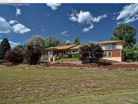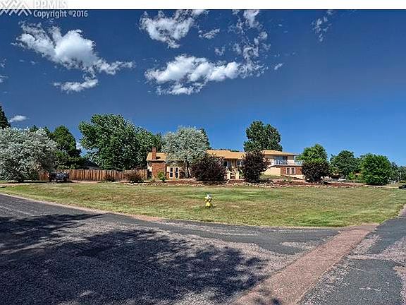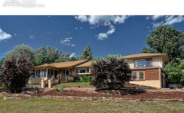 * COUNTRY LIVING in the city on 1 acre! STUNNING Pikes Peak views! NEW kitchen cabinets & granite counters * SSTEEL appliances * NEW carpet * NEW tile & vanities in bathrooms * HUGE vaulted 32x22 Great Room * SUNROOM w/ Peak views (not inc in sq ft) * SPACIOUS Lower level has FULL KITCHEN, laundry, can be locked off for an IN-LAW SUITE * 18x14 Master BALCONY w/Peak views * 2 decks + 2 patios * Sports fans will love the FENCED SOCCER FIELD w/artificial turf * CIRCULAR DRIVE w/ parking spaces & RV parking * 781 sf garage * Horses OK * City water *more * GENEROUSLY SIZED rooms * Master suite is ENTIRE UPPER LEVEL with walkout to balcony & EXPANSIVE PEAK VIEWS * NEW CABINETS in master bath w/ DOUBLE VANITY * Kitchen has a breakfast bar, 5-BURNER GAS COOKTOP. DOUBLE OVENS, PANTRY cabinets, inspiring PEAK VIEWS from the kitchen sink, & a COMPUTER/DESK/HOBBY area with a large work space & cabinets * LARGE 18x20 Dining Room adjoins sunroom * Plenty of SPACE TO ENTERTAIN inside or out * WOOD FLOORS in Kitchen, Dining, Master BR * Great Room has a WET BAR ROUGH-IN & an adjoining updated 1/2 bath * Main level Laundry/Mud room has TILE floor, SINK, 3/4 bath, storage closet * VINYL windows * Lower level has OPEN CONCEPT 2nd kitchen-living area, GARDEN LEVEL windows, 2 BRs & an OFFICE, and a full bath with new DOUBLE vanities & a laundry hookup * Hot water baseboard heat * COMPOSITE deck at front entrance * PRIVATE fenced back yard is landscaped w/ a DRY CREEK bed, perennials, large trees, MULTIPLE patios & a deck, a FIRE PIT, a shed, & a lean-to cottage * Basketball pole, wrought iron patio furniture, gas grill, & riding mower (needs repaired) STAY * HOT WATER baseboard heat * STUCCO & BRICK exterior * NEW ROOF in 2012 * Home is on CITY WATER w/ a SEPTIC system * MINUTES to shopping, I-25 * DISTRICT 20 schools.