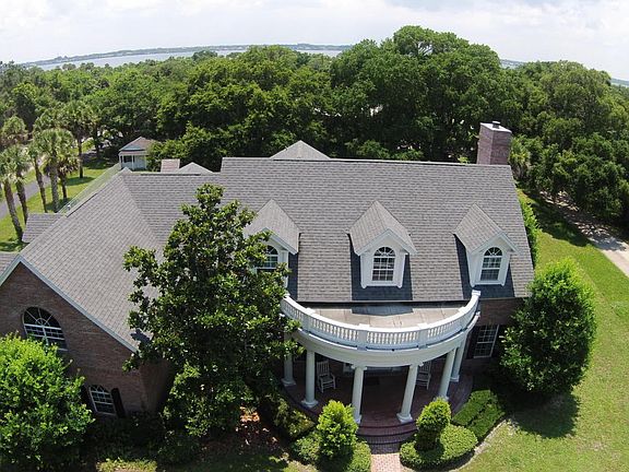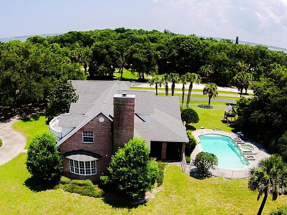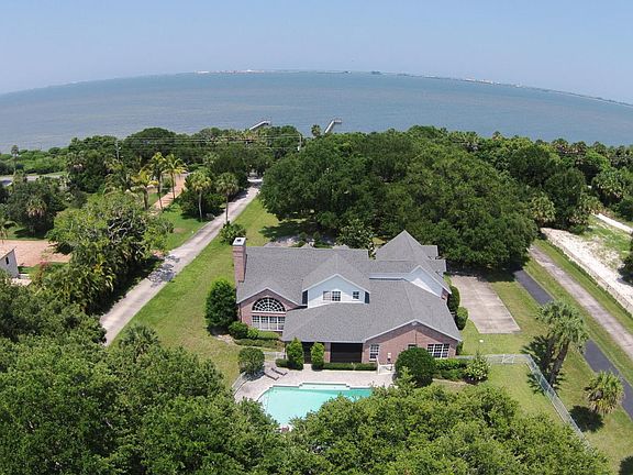 This beautiful and sophisticated South Merritt Island Estate Home is truly unique and one of a kind! Coming in the driveway is shaded by mature trees and the front of the home has stately columns and a rotunda porch to enjoy river breezes. Walk into soaring ceilings and bright natural light. Gorgeous formal living and dining rooms have elegant features. Kitchen is thoughtfully laid out with an island, eat-in area, breakfast bar that overlooks the family room and pool. Master Suite is complete with an attached den/office, luxurious bathroom and spacious walk-in closet. Upstairs is a media/bonus room that is perfect for family movie night. Live the Florida lifestyle with a dock and access to the banana river. Enjoy the pool and spa from the screened porch with plenty of room for entertaining