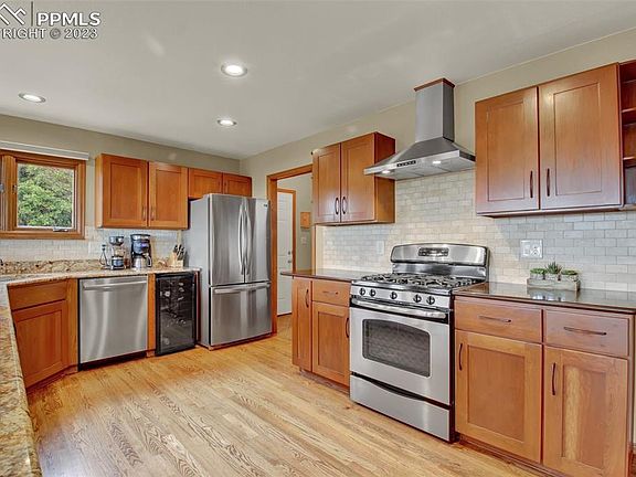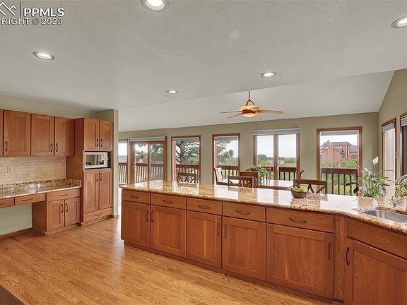 WOAH! When you think of Colorado-you might think of VIEWS!!! Well, this one does not disappoint! Located at the top of Rockrimmon (in D-20), you'll have city & Front Range mountain VIEWS FOR DAYS! Truly. The minute you walk through the front door, the overlook from the southern wall of windows will have you singing to the HILLS. Updating throughout and thoughtfully planned square footage opens up the main level. Thinking about becoming the master chef you deserve to be? No problem-You'll be THRILLED with the kitchen and the massive amount of counterspace (granite and quartz), newer tile backsplash along with gas range/oven and stainless hood. New Recessed LED lighting-Cupboards galore with new cherry wood doors and walk-in pantry, you'll be cheffin' it up with the best of 'em. Eat in dining area carries enough room for parties of almost any size! Speaking of serious space - the rest of the main level will keep you on your toes as you visit the Master Bedroom (Did I mention the views yet??) with attached full bathroom - complete with double stone top vanity and walk in closet. Every morning you wake-you'll be reminded by that view of how lucky you are to live in such a place! Adjacent dedicated office space with french doors and built in shelving is the perfect spot to get your work done! Head to the lower level-the views don't stop! 3 added bedrooms and a bonus room (workout/art studio) and wet bar surround the open space with which you'll be THRILLED. Tons of space to do...whatever you want! Maybe you want to build a workshop for your hobby, play billiards, or binge watch your favorite shows-You can do IT ALL and then some-The basement is your oyster! All bathrooms have been updated with new granite and quartz, sinks and tile *New Water heater ('21)*Central Air ('18)*SUPER durable metal roof*added parking (room for 2 vehicles) on side of home*Planter boxes with manual drip system in rear yard-Why are you still reading this? Grab your agent and come see this one!