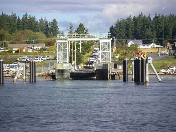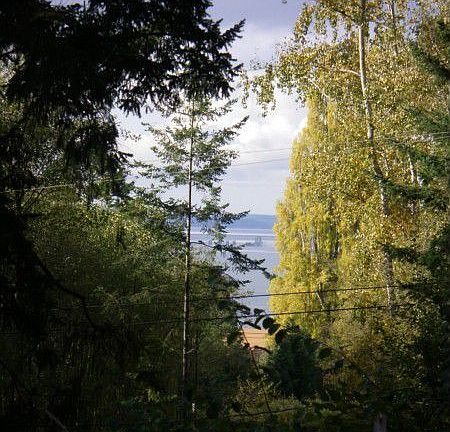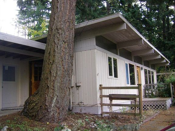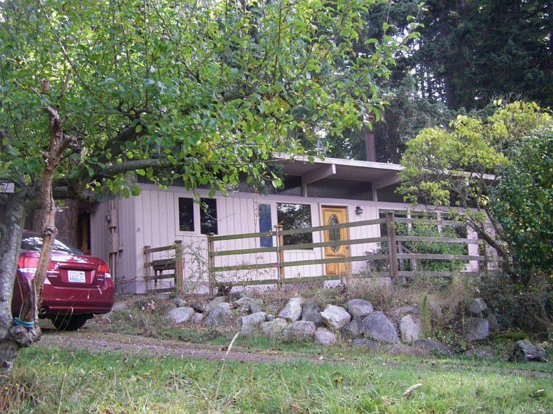 Well loved 1,120 square foot 2 bedroom cabin with a peek-a-boo view of the ferry dock. Nice south sloping property partially cleared with a sunny level garden space, fruit trees, tall evergreens, maples and madrona too. Bring your tools and rebuild this home, it has a cement foundation, or build another further up on the lot. There is access from Holiday Blvd. above, too.