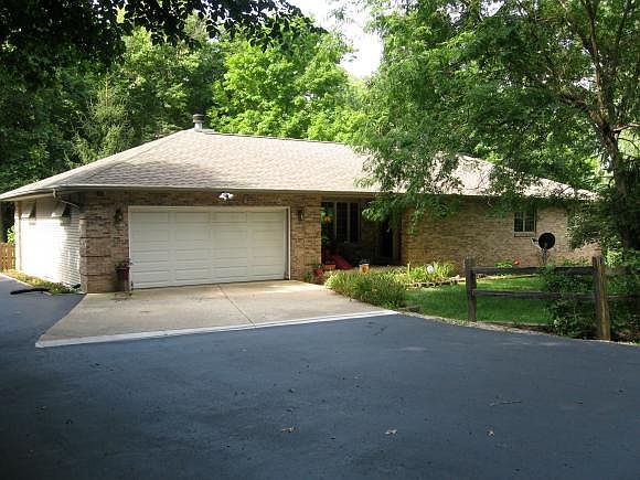 This home has been a dream come true for its current owners, but since they are relocating they must sell this rare gem on a gorgeous wooded 3.1 acres. This move-in ready brick and vinyl sided 3 bedroom, 3 bathroom ranch with finished walk-out basement has been lovingly maintained too. Sit on your Trex tiered deck and enjoy the wildlife and hardwood trees. The cedar fence that boasts extra-wide gates was handmade by the current owner as was the movable wood walkway. There is a creek that runs through the woods with a nice bridge for easy access to the rest of the property. Large great room boasts wood-burning (with propane starter) stacked-stone fireplace installed about 8 years ago and flanked by custom built oak bookcases. Great room also has a dining area and a spacious kitchen with solid oak cabinetry, solid surface counters, and a gathering island that was built by D & D Woodworking. Custom wide oak crown molding and solid oak 6-panel doors. Finished area in basement has L-shaped family room/den with corner gas fireplace, a room used as 3rd bedroom, and a walk-out to an over sized patio. House is built with 2x6 exterior walls and is well insulated. Heated and insulated 24x30 detached garage with one overhead door has floored attic and large workshop. Nayadic aeration septic system inspected twice yearly and emptied once yearly. Updates include: Premium roof installed 7 years ago. Abundant asphalt parking and circular driveway installed five years ago and sealed July, 2016. Carpet and superior padding in the basement. Updated Pergo floors on first floor and DuraCeramic tile in kitchen and main floor hall bathroom. Trane high-efficiency furnace and central air installed 3 years ago. New garage door with silent door opener. Upgraded Andersen Patio door and windows to deck. Culligan leased: water softener, tannin filter, iron/sulfur filter, and RO filter system serving the kitchen. Culligan services the devices monthly. Owned: ultra-violet light and wh