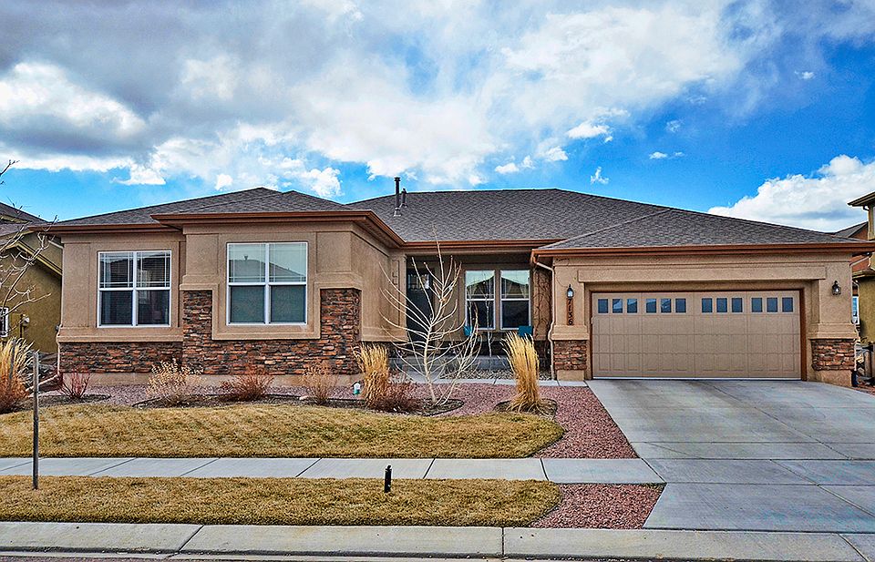 Enjoy main level living at its finest in this gorgeous ranch plan that features 4 bedrooms on the main level. The large master suite has a beautiful 5-piece master bath including a 70 Jacuzzi tub and over-sized shower. The gourmet kitchen includes stainless steel appliances, downdraft cooktop, built-in oven, granite slab countertops, wood floors and a large 10 x 4 walk-in pantry. Three large secondary bedrooms are tucked away down their own hallway and share a private full bath with dual sinks. French doors led to your bonus room to be used as either a study or formal dining. The large Great Room boasts a beautiful over-sized stone gas fireplace and entertainment niche. The main level also features a large 10 x 5 laundry room, 10 ceilings throughout, numerous decorative arches and skip trowel texture. All the interior walls have been sound insulated. Some of the additional upgrades include air-conditioning, humidifier, garage service door, 8 custom storm door and built-in hall tree. The yard is fully landscaped including concrete edging, 3 garden beds, retaining wall and amble space for playing and planting. Seven windows light up the basement and already include polycarbonate window well covers. The basement is pre-plumbed for two future bathrooms and builder plans show potential for three additional bedrooms and a large rec area. Banning Lewis Ranch features two pools including the newest Vista Water Park with zero entry, slide and lazy river. Your HOA dues include the pools & rec center, cable internet, trash & recycling. Located on a quiet cul-de-sac by the neighborhood charter school this well-maintained home is move-in ready.