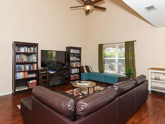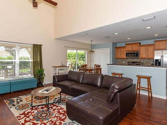 This two story open floor plan home features 3 bedrooms, 2.5 bathrooms, a 2 car garage, a fully fenced yard, and is located in the master planned and designed community Heritage Harbour. This community is minutes from I-75 providing access to Sarasota, Tampa, and St. Pete. The kitchen features corian counter tops, stainless steel appliances, maple cabinets, and completed with a backsplash. The kitchen also features a bar area perfect for those more casual meal times. A formal dining area is adjacent to the kitchen. In the main living area rich laminate flooring can be found and a vaulted ceiling, which truly adds to the property's open feel. For your added convenience a half bath can be found on the first floor. The second floor of this property features all three bedrooms that have new carpet throughout. The master bedroom has a walk in closet and an en suite bathroom with dual sinks, a corian counter top, and a walk-in shower. The guest bathroom also features a corian counter top and has a tub with an attached shower. You will find yourself enjoying a lot of your time in the fully fenced in back yard which includes a paved patio area and a built-in fire pit. This area is perfect for enjoying your morning coffee, grilling out, and entertaining family and friends. The community includes walking/biking trails and a recreational park allowing you and your family to take advantage of the year round Florida outdoor lifestyle. All appliances are being sold with this property. CDD fee is included in tax.