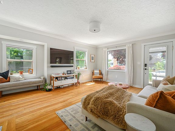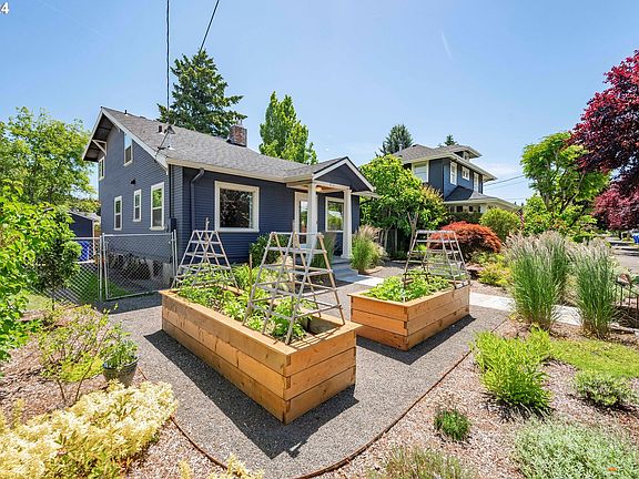 This lovingly updated Arbor Lodge bungalow is ready to welcome its new owners. The home's entry is bright and open, with hardwood floors and large energy-efficient windows that bring in a wealth of natural light. The gas fireplace surround is composed of original shiplap from the home, and is just one of the character touches throughout the house. With a surprisingly open floorplan, the bright kitchen allows you to interact with friends in the living room, through the dining room, straight out to the yard. The large deck, paver patio, custom pergola, and fire pit area all provide unique areas for entertaining or just relaxation. Low maintenance landscaping in the front and back yards include raised garden beds and a variety of mature plants. Inside, the oversized primary bedroom is a respite from day to day life, a cozy retreat. If you need another space to enjoy, the updated bathroom includes neutral colors and a deep soaking tub. Inside the second downstairs bedroom is a closet built-in that allows you to use it as a bright office, or as a guest room. Up the original stairs, through the handmade barn door, and you find yourself in an incredibly large flex space. Usable as a bedroom, living room, office, or home gym, let your imagination (or Pinterest page) run wild. While this home is obviously Instagram cute, there have also been updates to the plumbing and electrical systems, as well as insulation added to the main walls. It also has a newer roof and interior and exterior paint. You won't find a better location. While this home is a quiet hideaway, it's also less than 1 mile to New Seasons and less than 1/4 mile to Arbor Lodge Park and the elementary school. Exceptional restaurants, live music, and shops are all close by. [Home Energy Score = 4. HES Report at https://rpt.greenbuildingregistry.com/hes/OR10229753]