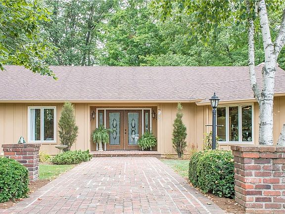 Beautifully maintained 3 BR, 2.5 BA Ranch on 3.86ac in Lawrence Twp. Space abounds in this sunny and airy home. Circular driveway, brick paved walkway and porch. Lg ceramic tiled Foyer with double beveled glass Entry Doors. Timeless stained woodwork throughout. Fireplaces in the Great Room and Living/Dining Room. Eat-In Kitchen w/granite counters, granite topped desk, and a large center island with a cooktop and 2 full-size ovens . Spacious Master Bedroom Suite has his & hers walk-in closets. Enjoy the beautiful and private wooded lot inside from the Sun Room or outdoors on the upper deck, then go to the lower deck relax in the Hot Tub. 2-car attached garage, plus a 2-car detached garage. Free standing 18'x12' Greenhouse
