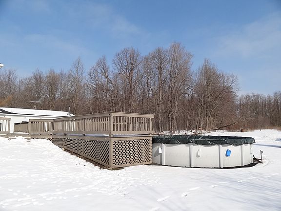 6+ acres, public water, 1999 built by Wallco Construction. Many updates include 2001 24x40 outbuilding with 9' overhead doors, 6" concrete pad, electricity (100 amp sub). Roof 2016, windows 2015, front door & bow window 2006, covered front patio. Affordable utilities supplemented by pellet stove. Solid surface kitchen counter with tiled backsplash. Hardwood floors throughout 1st floor, 2 full baths, spacious family room level, 11 course basement. Awesome property, I90 "around the corner". Large deck with above ground pool