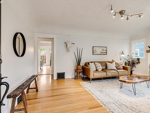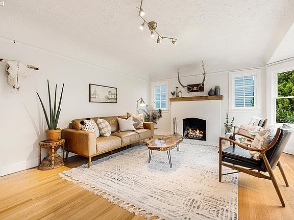 This classic home is nestled in the charming Sellwood/Westmoreland neighborhood of Portland, known for its tree-lined streets, vibrant local shops, and a community-focused atmosphere. Residents here enjoy easy access to parks, cafes, and the Willamette River, offering a blend of urban convenience and suburban tranquility. Inside, discover a tastefully updated interior that seamlessly blends modern comfort with 1920's charm. The kitchen has been fully remodeled with new appliances, cabinets, and countertops. Recently refinished hardwood floors that add warmth and character throughout. A wood-burning fireplace adds a cozy focal point, ideal for chilly Pacific Northwest evenings. The bathroom also reflects contemporary elegance with its remodel, offering a cozy retreat after a long day. Through new French doors step into your own private oasis, a backyard retreat adorned with apple and persimmon trees, blueberry bushes, and prickly pears. There is ample space for gardening, gatherings, or quite evenings around the fire. This home has been maintained with significant updates including a new roof in 2019, exterior painting completed in 2023, and the recent installation of a new AC unit. Additional improvements such as new exterior doors and many updated windows enhance energy efficiency while preserving the home's timeless appeal.
