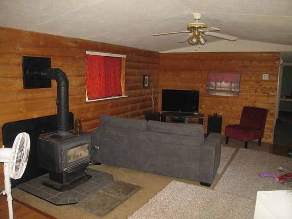 3 Bedroom mobile home located on a well landscaped .5 acre lot. This 1995 model has a fenced in back yard, 2 car garage, wood heat and is cute as can be.