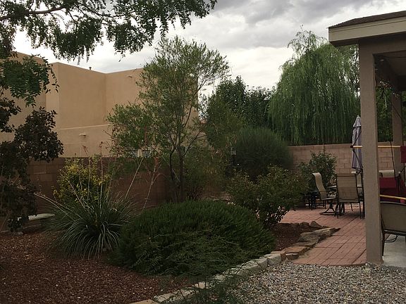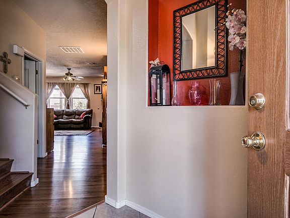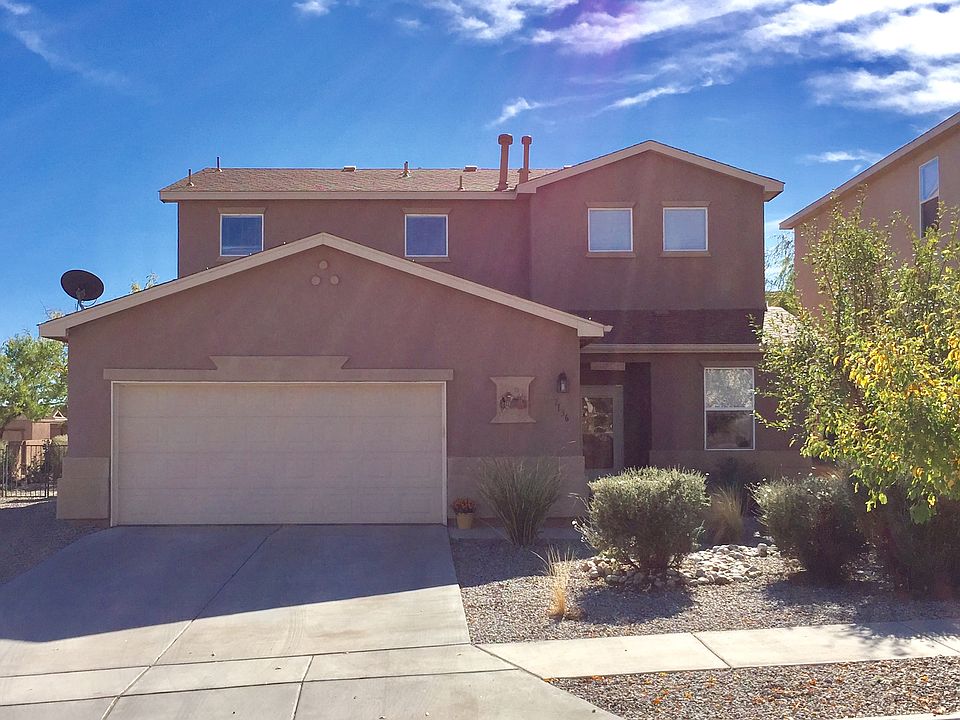 One of the BEST locations on a large corner lot with great views, this 4 bedroom home with NO PID, offers the master bedroom downstairs while having a spacious loft with great views and 3 roomy bedrooms upstairs. Enjoy the open floor plan with solid surface counter tops in the kitchen and cozy up to the Kiva fireplace in the great room. This home has a large side yard and a fully landscaped backyard with a covered patio for your outdoor living and entertainment needs with elevated views! Oversized 2-car garage with workbench and built-in storage shelves. Close to great schools, parks, nearby walking trails, hospitals and westside CNM campus for all of your conveniences. Come see this home today!
