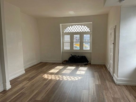 This bright and stylish third-floor 1-bedroom, 1-bath apartment offers modern upgrades in the heart of Mt. Airy. Featuring an open layout with new wood-style flooring and large windows, the space feels airy and welcoming. The updated kitchen includes sleek white cabinetry, stainless steel appliances, a gas stove, and a subway tile backsplash. The bathroom is newly tiled with a clean, contemporary design. Perfect for singles, couples, or remote workers, this unit offers both comfort and functionality