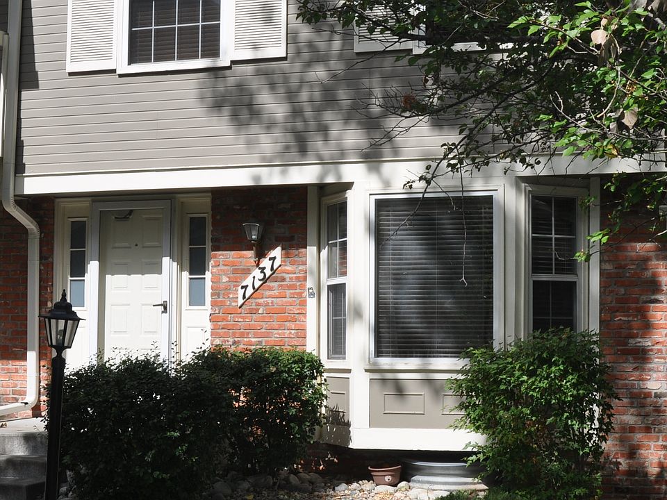 Ideal location fronting greenbelt/open grass area! Updated kitchen with granite, new stainless appliances, sizable eating space that opens onto a nice sized patio area, brick fireplace, updated main floor half bath, finished basement with new carpet, a non-conforming bedroom and bath. Detached 2 car garage with access door from the patio. Great location, beautiful complex!