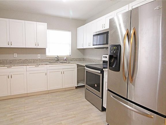 ***PREMIUM REMODEL IN NEW PORT RICHEY*** Situated on a level 0.15-acre lot, this 3BR/2BA has been beautifully remodeled to reflect modern preferences & contemporary styles. Driving up, you immediately notice the manicured front landscaping & the tidy driveway. Enter the chic neutral interior to discover a semi-open floor plan, a cozy living room, rustic wood tone porcelain flooring all throughout & a gorgeous kitchen which includes white cabinetry, refrigerator w/freezer drawer, granite countertops, double stainless-steel sink, & a built-in microwave. All 3 Bedrooms have comfortable size, ceiling fans, and dedicated closets. Enjoy the convenience of an exquisitely renovated bathroom with custom tilework, shower for the Master ensuite bathroom and combo shower/tub for the second one, with fashionable storage vanity! Additional features include outdoor shed, fresh paint, laundry room inside, close to restaurants, shopping, parks, entertainment, and more! With so much to offer, this renovated, turnkey beauty will not last long. Call now to schedule your private and exclusive showing!