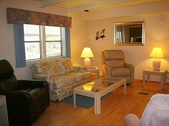Very UNUSUAL EXPANDED SINGLEWIDE!!! Main home is 14' wide but there are so many more rooms to explore. You enter into large, enclosed Florida room w a charming covered porch. Up 3 steps you enter into a butler's pantry & then into the kitchen. I have never seen so many storage cabinets in a home! The eat-in kitchen is open to the living room both with laminate floors. The large master bedroom has 2 closets & full bath. The 2nd bedroom has an office/sitting area & full bath as well. On the other side of the home is an enormous laundry room opening up to a covered/screened porch on one side & large workshop/storage area on the other side. There is a separate stall shower in the workshop to clean up after yard work. New Lenox A/C 11/2016 & New AMS aluminum roof over 3/2017. OWN THE LAND