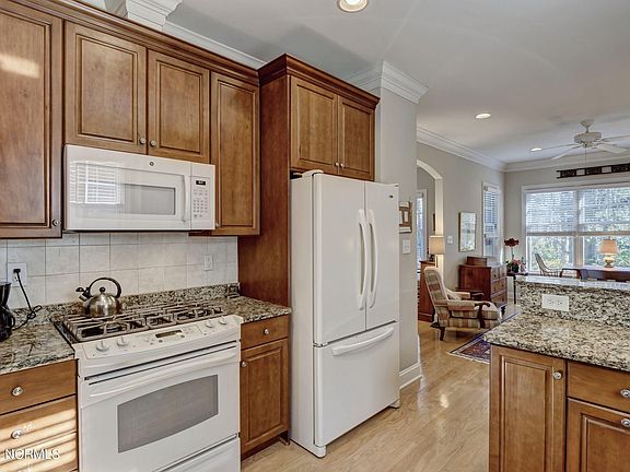 Located just inside Landfall's gated Arboretum entrance with close proximity to Mayfaire, Saybrook Village offers brick single family villa houses with yard maintenance by the association. Perfectly sited at the end of a cul-de-sac, this home offers great privacy overlooking the gently sloped wooded buffer with the headwaters of Howe Creek. This nearly 3,000 square foot residence features an open floor plan with central kitchen featuring granite counters and gas cooktop. Enjoy the beautiful great room with gas log fireplace and custom built-ins. A first floor master suite includes an elegant bath and huge walk-in closet. Upstairs are two bedrooms with shared bath, a bonus room (22' x 15') and sitting area.