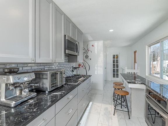 Charming rambler with many updates. Gorgeous kitchen with Granite countertops, breakfast bar, stainless appliances, custom backsplash and ceramic floors. You will also find a pantry for additional storage. Freshly painted living room with hardwood floors and wood burning fireplace for those chilly evenings. Take a walk into the main level primary bedroom where you will discover a make-up station and walk-in closet. Additional features on this level are a remodeled bathroom with custom tiled walk-in shower, modern vanity and tiled floors. Lower level showcases two additional bedrooms and a family with an electric fireplace, updated full bath with a modern double vanity. You'll love the large paver patio for warm winter fires or Summer bbq's creating the ultimate entertainment/oasis space/playground for adults and children. Fully fenced-in yard ready for play, pets, and relaxing. Easy freeway access to downtown, airport, shopping and dining. Your charmer awaits!
