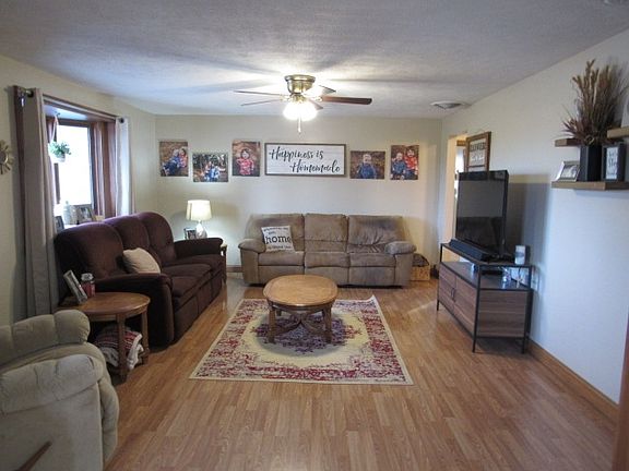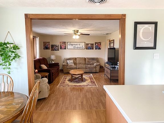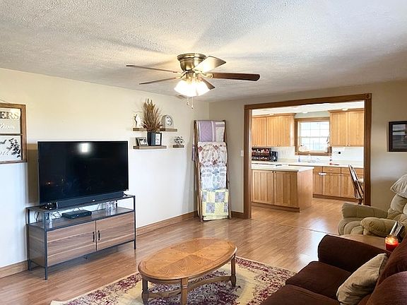 Beautiful country setting for this comfortable home! All of the rooms are good sized and has an open layout. The kitchen features a wood burning stove, pretty wood cabinets, white tile backsplash, and a huge walk-in pantry. The replacement windows offer great natural light in every room! The hall bath is even over-sized and has a whirlpool tub, tons of cabinets, and a tile floor. There are so many wonder features in the home including an 11 x 9 mudroom with a sink and storage cabinets between the house and garage. So much to enjoy outside too with a big circle drive, front porch, back patio, insulated detached garage with extra concrete slab and a carport. Included in the sale: Refrigerator, range/oven, dishwasher, disposal, all window treatments, fireplace tools, carport, playset, and wood shed. Excludes: Freezer, garage cabinets, TV, all cord reels, all wall hangers & shovel rack, and chicken coop. With 1.7 acres, there is plenty of room to enjoy the rolling property with mature trees and beautiful views in every direction!