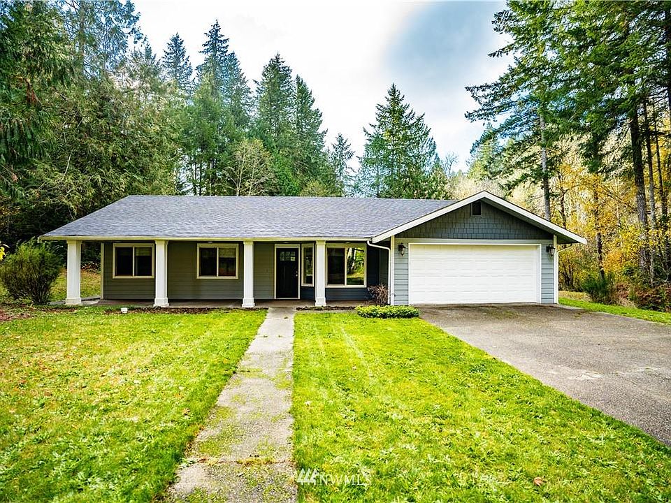 Sharply cared for Steamboat rambler on 2.46 private acres. Fully renovated open concept floorplan featuring vaults, ductless heating & A/C - low maintenance lifestyle with stylish updates: granite counters, tile backsplashes, white shaker cabinets with real wood/soft close cabinetry, washed maple laminate & tile floors, white raised dual paneled doors, fully wrapped vinyl windows & 6" base trim, energy efficient LED lightning, newer roof. Griffin/Capital School District. Pre-Inspected too!
