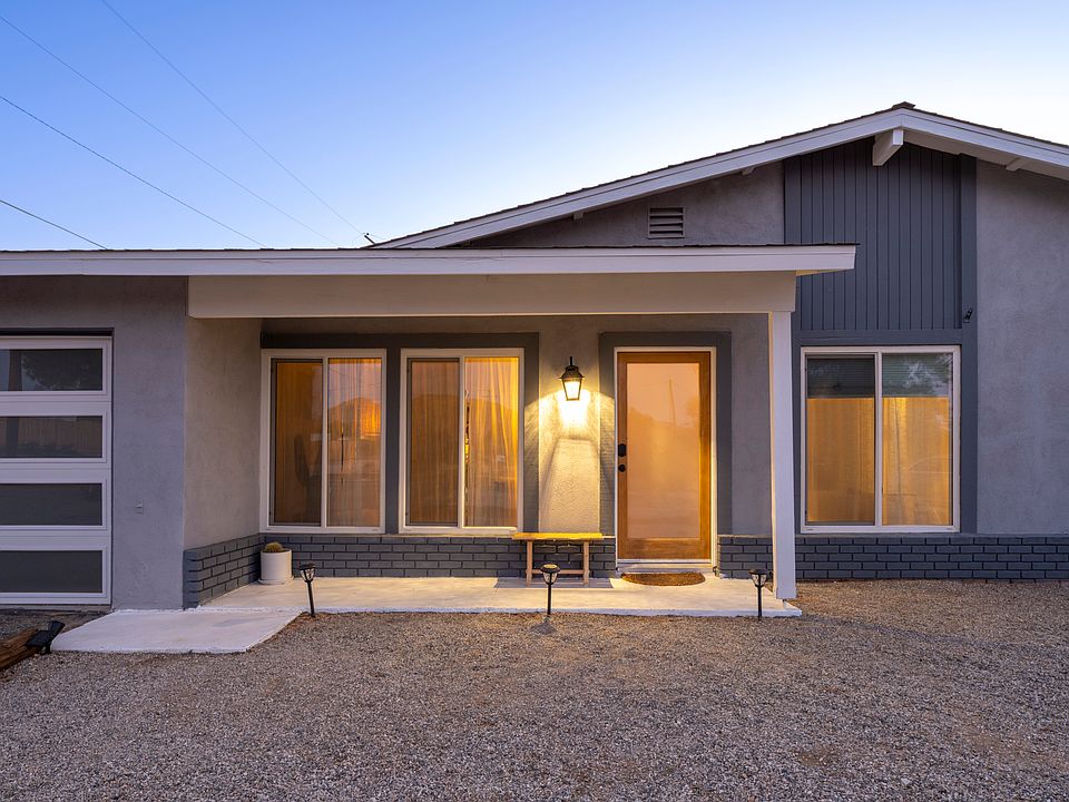 Fully furnished four bedroom, two bath in the heart of Joshua Tree, walkable to town. There is a spacious fenced backyard with outdoor bath tub and relaxing patio. Garage has a springboard floor dance studio, perfect for yoga enthusiasts, pilates students or dancers.
