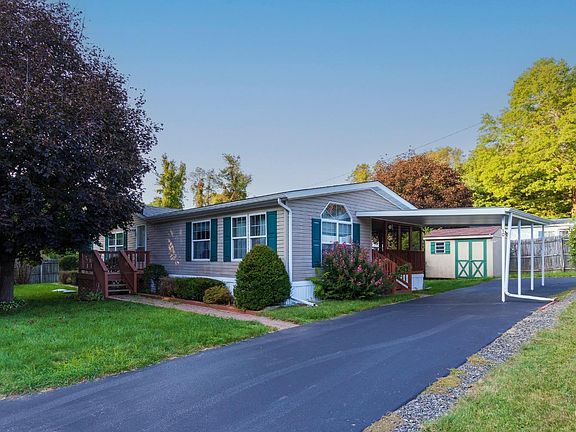 This 2001 manufactured mobile home has a delightful screened in porch with sliders into the dining room. The double wide offers 3 full bedrooms, 2 baths, light filled eat in kitchenm dining room, spacious living room and a laundry room. Located ear the end of the land there is a nice front deck, and private back yard, car port and shed in this 55 and over mobile home park located between the villages of Rhinebeck and Red Hook.