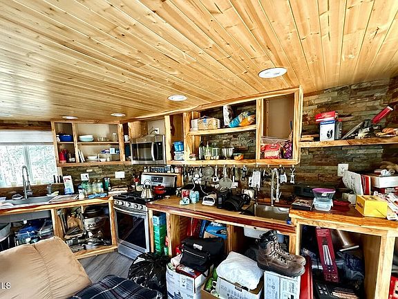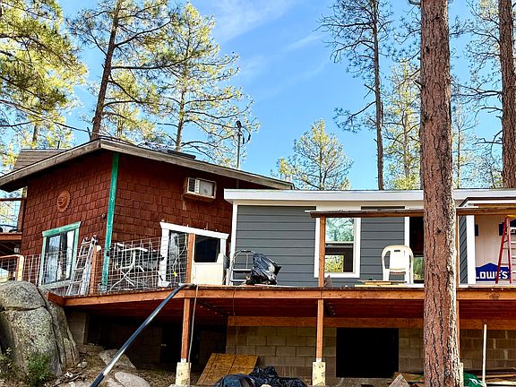 A work in progress, finish this unique cabin up in Crown King, AZ. Located close to town in the neighborhood behind the Saloon. This future 2 bedroom, 2 bathroom cabin has had most of the hard work completed. Roof, Flooring, Windows, Decks, Doors, Cabinets, Counter Tops, etc. The cabin sits on almost a half acre, and backs up to Forest Preserve. This home offers an Octagonal open floor plan with a Loft and Artistic Vaulted Ceiling. The Kitchen has been updated with Alligator Juniper Cabinets, and Counter Tops. 2 separate sinks gives you a prep area. The Loft Bedroom adds Character and Style. Step outside to the deck to soak in the breathtaking views. You have an exciting opportunity to truly make this space your own. Embrace this mountain lifestyle and make this haven your sanctuary. The craftsmanship of the work completed is truly top notch. The Water supply comes from Philadelphia Water Company, and Electric is APS. The Septic is in and connected. Located just off the only paved road in Crown King. It's now your turn to come home to Crown King.