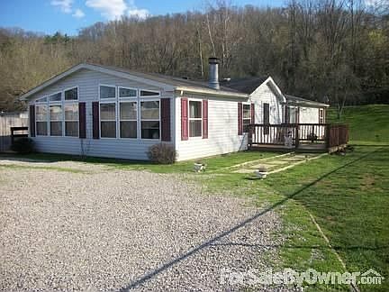 3 bedrooms and 2.5 baths.  Has a wood burning fireplace for the chilly romantic evenings. Kitchen has an eat-in dining area that has an open floor plan to a nice size family room. It also has a nice cozy living room that leads to the bedrooms. The master bedroom has a nice large master bathroom with a corner shower and garden tub. Plenty of closet space. It has a new hot water heater. The dishwasher is one year old, but rarely used. The home also has three skylights. It has a nice deck off the back the catches the sliding glass door and the back door that leads to the laundry room. It also has a nice deck on the front of the house.. The home sits on approx. 1/3 of an acre. $85000. By appt. only. Letter of Pre-Approval required. Any questions feel free to call. (304) 483-4405.Additional property info: http://www.forsalebyowner.com/listing/F5181?provider_id=28079