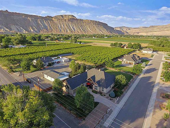 This beautiful custom-built home in coveted White Lily subdivision boasts 3 large bedrooms and separate office PLUS heated/cooled bonus room in garage! MANY upgraded features include 8-foot knotty alder doors, hand textured walls, granite counter tops with an attractive blend of smooth & chiseled edges, and SO MUCH MORE! Chef's kitchen features upgraded Electrolux appliances, including double convection oven, gas range and 36-bottle wine cooler to store your collection of local Palisade wines! Two gas fireplaces with custom stone work and knotty alder mantels. Crown molding is the architectural feature of the living room with a wall of door length windows that showcase the unobstructed views of Mt Garfield & Mesa exquisitely! Professionally landscaped yard with two patio spaces, raised garden bed area and privacy enclosed hot tub! RV hookup, OVERSIZED garage and outdoor storage shed.