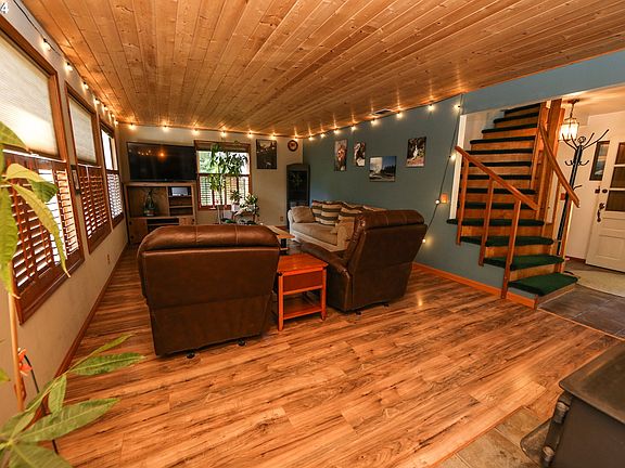 This beautiful custom home is a gardeners and tinkerers delight! It is tucked away amidst lush trees and gardens, creating a serene, private retreat in the center of town. Main home features a comfortable space with tung and groove ceiling, insulating window coverings, new garbage disposal and new exterior paint in 2022 as well as some recent new interior paint. The lower level offers the option for an additional bedroom complete with a cozy fireplace and half bathroom. Extra shop on property is 768 square feet and has new metal roof and a spacious workshop to fit anyones desire! The extra room located next to the shop is 410 square feet and currently features a music room offers additional living square footage and could be an art studio or possibly an ADU if the owner wished to follow the proper permitting and check with the City. This property is unique to this area as it has plenty of space for RV, boat, or trailer parking with an two existing greenhouses and a tool shed to offer ease of caring for the land and a peaceful koi pond - you may never wish to leave your property! Located on nearly an acre of R2-zoned land, this gated and fully fenced property offers endless possibilities with existing fruit trees of apple, peach & plum trees with a nice sized raspberry orchard. The sun-drenched home showcases a new expansive deck and a durable 50-year roof. With its unique charm and character, this home feels like your very own treehouse getaway. Call or text today for your private viewing!