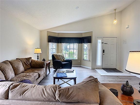Welcome to this well maintained fully furnished home in the charming neighborhood of Davenport Lakes. This home has a newer roof, and has recently been updated with luxury vinyl plank flooring in all of the main rooms and bedrooms. The large living room and family room have vaulted ceilings and an open and airy feel with lots of space to spread out & relax. The eat in kitchen over looks the family room and out to the sparkling pool and conservation view to the rear. The rear lanai & pool area is private with no rear neighbors & has a covered section for enjoyment all year round. This home features a great floor plan with the master suite separated from the guest bedrooms and bathroom. The master suite has access to the pool deck through patio doors and the master bath has a garden tub and separate shower as well as a good size walk in closet for ample storage. Currently successfully managed as a vacation home, bookings can convey with the current management if needed. Perfect location close to Champions Gate, the attractions and shopping/dining on US 27 and Hwy 192. The community has lots of amenities to enjoy such as the resort style pool, tennis, playground and close access to the lake and community boat ramp.This home will be perfect as a short term vacation investment home or permanent residence. Come and see why this home is your opportunity to own your piece of the Florida lifestyle. Make your appointment to view today!