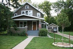 Charming, restored 1926 Craftsman on brick street in historic district. Roughly 1500 sq ft. Incredible built-in woodwork; four bedrooms (two large, two small) and one full bath on second floor; half bath, living room, dining room, kitchen and small study on first floor; kitchen is sunny and has a breakfast nook; central heat and air; washer/dryer in unfinished basement with plenty of storage; two-stall garage; open front porch with porch swing; small screened-in side porch; large and private side yard surrounded by trees; has been radon mitigated; on city bus line; easy walk to downtown and campus. No pets. Limited to three unrelated individuals per permit. Available August 2015.