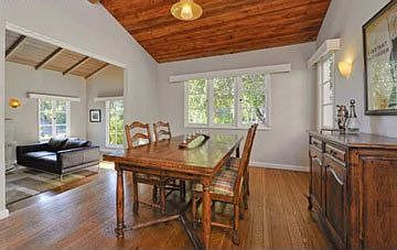 Traditional in Prime Montclair location! Sharp 1930's split-level Traditional set on a wonderful level 7,500 sq. ft. corner lot that feels and lives like your own private park. The architectural details of the era are still intact from the open wood beamed ceiling, built-ins, pretty wood windows, stone fireplace and gleaming hardwoods. A welcoming entrance way opens to a living room with cathedral open beam ceilings, fireplace and pretty tree outlooks. The formal dining room is perfectly positioned between the living room and kitchen, and has a raised wood ceiling and pretty serene out looks from the many windows. The eat-in kitchen has been updated to include newer stainless steel appliances and tile floors. The kitchen open through sliding glass doors to a tile patio inspiring true outdoor/indoor living . The fantastic back yard is a wonderful urban oasis complete with an al fresco dining area, potting shed, rock gardens, and lush mature landscaping. The split level design with 3 bedrooms up provides the perfect separation from public spaces to private bedroom spaces. One of the bedrooms is quite large and easily accommodates a king sized bed, the other 2 bedrooms are perfect for guest bedrooms or home offices. The house boasts great closet space, storage, plus the added convenience of interior access to a large 1 car garage. On half a level down is a half bath, spacious laundry area, and access to the garage.