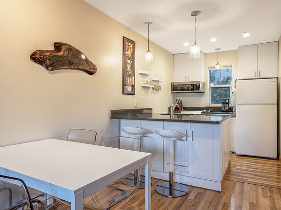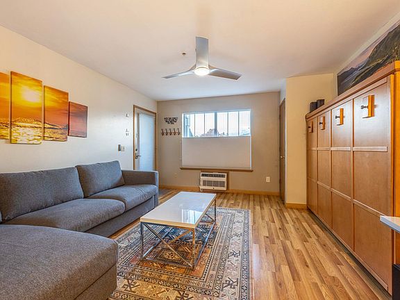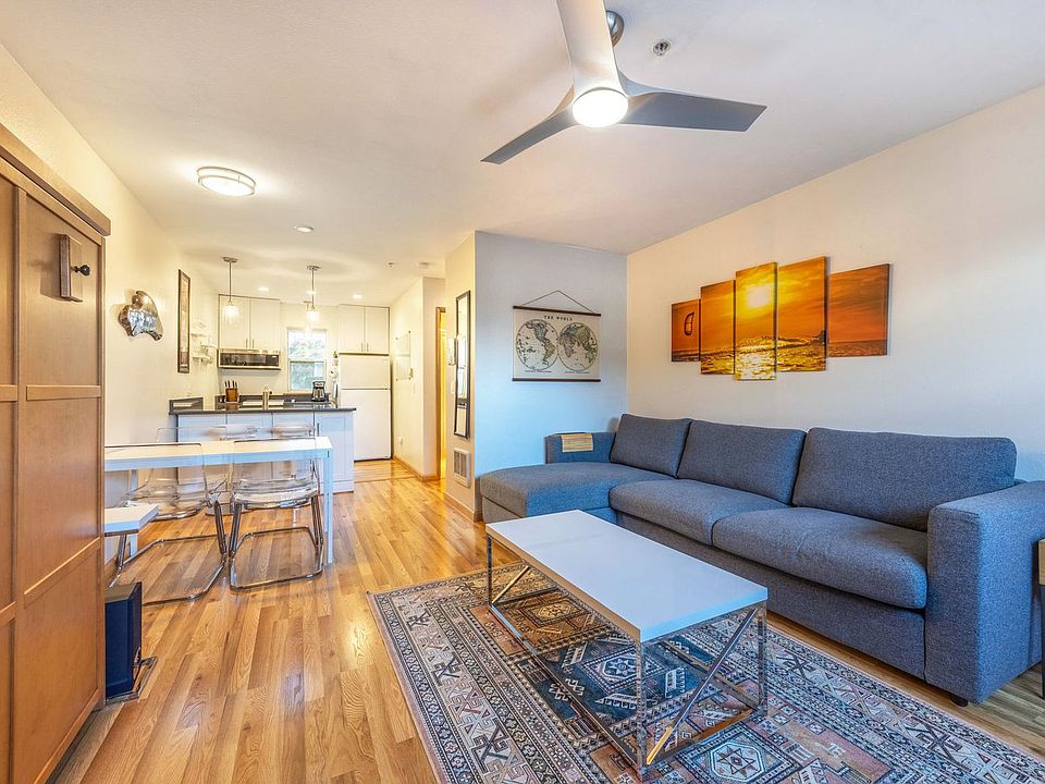 Hood River, Oregon is a beautiful destination that combines the very best of outdoor adventure and opportunities to shop, dine, and enjoy amazing entertainment. 08 Lodge is a charming and comfortable 1-bedroom, 2-bath unit. Walking through the front door, you are greeted by wood floors and an open-concept floor plan that seamlessly blends the living, dining, and kitchen spaces. Onsite parking in front of the condo is available for those arriving with a vehicle, making it easy to move suitcases from car to residence in no time at all. This condo is an end unit on the ground level. The bedroom has a king-size bed, and the living room features a pullout sofa, accommodating up to four guests. There are two window ACs to keep you cool on hot summer days and nights, one in the living room and one in the bedroom. With the mountains and rivers waiting outdoors and this cozy abode offering fine features and amenities indoors, it's easy to see why visitors return year after year. Coin-operated laundry facility on site. This Hood River destination is the perfect place to call your home away from home when you're searching for accommodations that provide unsurpassed views of Hood River's breathtaking landscape. You'll be close to fun downtown bars, delicious dining, shopping, and only minutes from world-class biking, kitesurfing, windsurfing, kayaking, and hiking. Mt. Hood is home to four ski areas and offers the country's only year-round skiing and snowboarding. Wi-Fi is provided by Spectrum, offering the fastest service in Hood River. The living room is equipped with a smart TV. No BBQ and no pets are allowed. Downtown is literally within minutes out the front door.