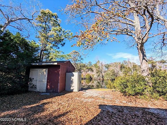 Picture yourself living in a charming coastal community located 1 mile from the Surf City bridge. Welcome to Gabe's Point! Your new home is only 2 miles to the sugary sand beaches of Topsail Island. Deeded neighborhood boat ramp & day dock with ICWW access. NO HOA! This ranch style house has covered porches spanning the front and back of the home. The backyard overlooks a scenic pond, perfect for birdwatching. Inside features first floor primary bedroom with en suite bathroom, 2 guest bedrooms, full guest bathroom, living room, den/study & dining room. The kitchen features hardwood cabinets and an exit door to the back porch. Oversized 1.5 car garage. 12'x12' utility shed in backyard. New roof and HVAC in 2019. Fig tree, rose bushes and live oak trees surround you. Make your best offer today to call Cockle Street home.