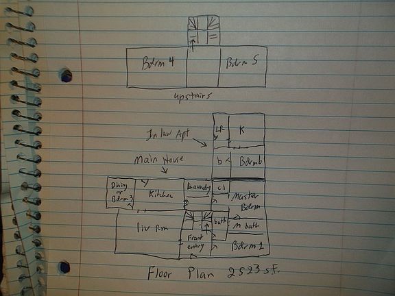 Five bedrooms two bathrooms in the main house. An apartment/ mother in law suit. Has one bed one bath. Large kitchen and small living room.