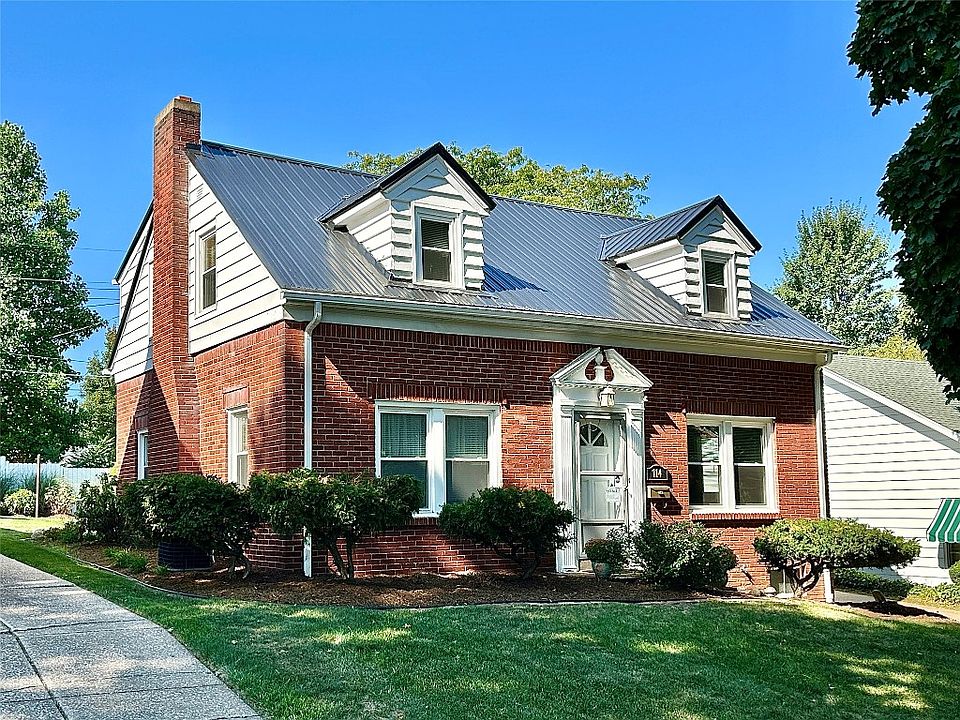 This charming 3-bedroom brick cape is nestled on a picturesque tree-lined street in the sought-after Frontier area. Move-in-ready with numerous updates, it features a spacious living room, formal dining room, eat-in kitchen, new first-floor full bath and first-floor laundry (2024). The back entryway offers versatility, perfect as a mudroom, home office, pet area, or playroom. Upstairs, you'll find three generously-sized bedrooms and a remodeled full bath. The basement provides a workshop, a shower & toilet, and laundry hookups. Updates include a metal roof (2022), gas hot water tank (2023), and newer vinyl windows (2010). A detached one-car garage with a large shed behind it adds extra storage. Just minutes from Presque Isle State Park and within walking distance to the West Erie Plaza, this home is in a prime location.