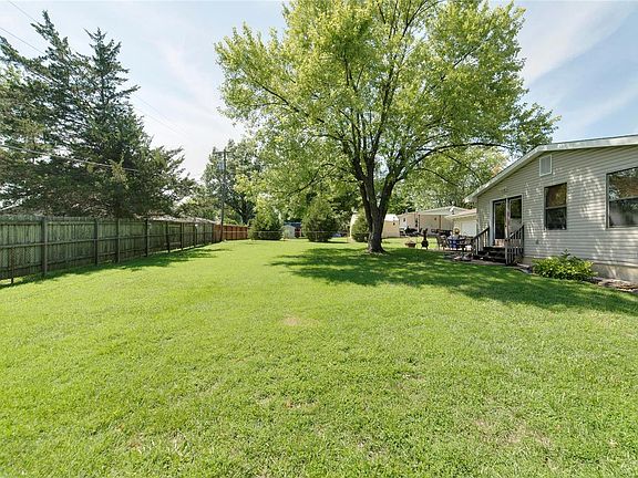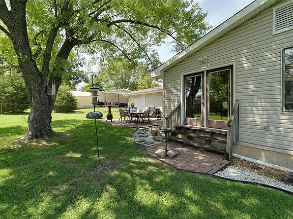Lovely RANCH home in the heart of O'Fallon with easy access to most anything you need... shopping, highway, schools, restaurants, etc.... Currently a 2 bdrm but a 3rd can potentially be added in large family room in rear of home. Great curb appeal with custom landscaping in front. Vinyl siding. Wood floors, some crown molding in front living room. Custom floor moulding throughout. HVAC in 2017. Large family room area with dining area attaches to kitchen in rear of home. Access door here to the big backyard and patio area that sits behind the garage. Two car garage, (one side is OVERsized!) with one garage door opening in the rear for easy lawnmower storage. FOUR work spaces/tables in the garages for the tinkerer.... Perfect for a workshop or outdoor entertaining. Level yard on quiet street is great for kids or pets. Washer and dryer, garage frig will stay (everything works!) Blown in insulation in attic. Pet free/smoke free home. Seller says neighbors are fantastic!!