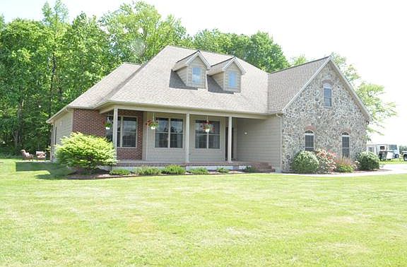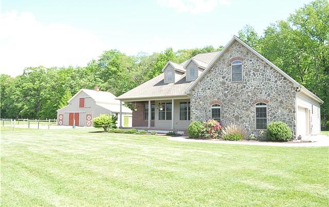 Custom built 3 bedroom, 3 1/2 bath home,two finished bonus rooms upstairs all on 4 acres with 3 stall horse barn . Amish built kitchen with double convection oven, pantry, and large island. A large dining area for all your entertaining needs. Large living room with ceiling fan. Master bedroom with a large walk in closet, soaking tub and stall shower. Split floor plan with two additional bedrooms and a hall bath. Sunroom with fireplace and ceiling fan has outside access to covered patio with a ceiling fan and hot tub. Two large bonus rooms with large closets upstairs. A full bath upstairs. Floored attic space offers additional storage. 46 x 24 barn,stairs lead to the 22 x 24 hay loft, electric, water, fenced paddocks. 12 x 18 shed w electric. Greenhouse and garden complete this homestead.
