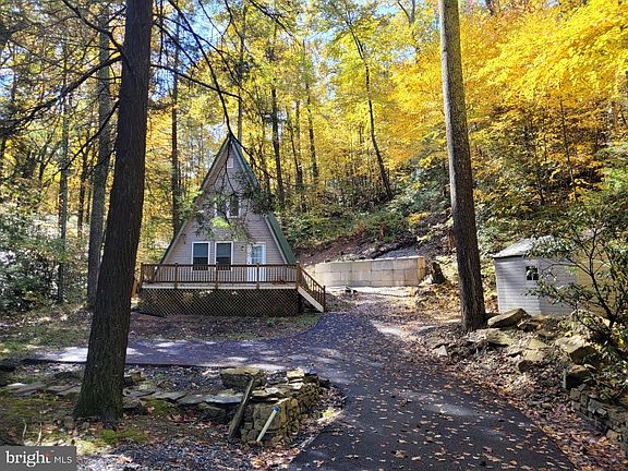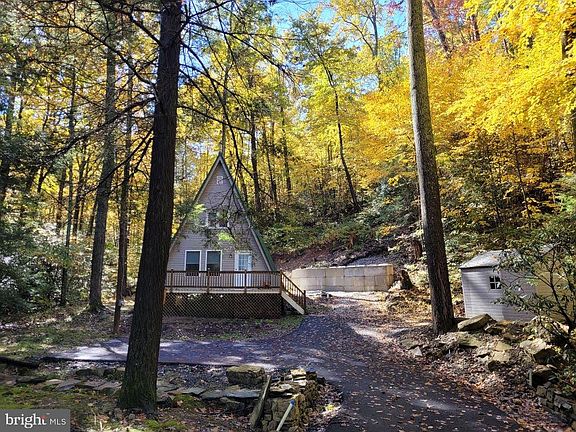 Beautiful a-shaped cabin/home located in visually captivating, wooded area. Enjoy the views from both the front and back deck areas. On the first floor you have an open concept kitchen and living area with bright inset lighting. On the second floor you have two bedrooms and a full bathroom all adorned with pine wood walls. This home was renovated four years ago, with a new metal roof, siding, floors, drywall, paint, pine walls and ceilings on the second floor. As well as the septic, well, electric, panel box, hot water heater, and stove which were all placed in the home in 2018. Come view this peaceful "staycation" home right in the countryside parts of Pennsylvania. Inclusions: Range, Refrigerator, & Shed.