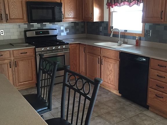 Spacious four level home with lots of family living space including a family room with gas fireplace, an additional rec/game room, with lots of storage. Roof was replaced in May of 2015. The large newly updated kitchen features solid oak cabinetry, eat in breakfast bar with barstools and mounted flat screen television, stainless steel and black appliances (gas range, French door refrigerator, microwave and dishwasher). Sliding glass door overlooks wooden deck (wired for hot tub) and fenced in backyard. Sliding glass door and picture window were newly installed in July 2016. The main floor features gorgeous wood floors in dining and living room. Upstairs includes three bedrooms with master having his and her closets, newly remodeled full bath with ceramic tiles and large closet. Lower level includes family room with gas fireplace, full bath, laundry hookup and a possible fourth bedroom. All windows on this level were newly installed in July 2016. The lowest level contains rec/game area, half bath, two additional rooms for storage including another laundry hook up and storm cellar. The three and half car detached garage has shelving and overhead storage and includes hook up for gas furnace.